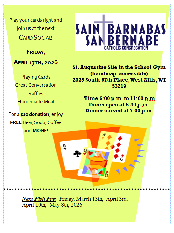 6pm (H.A) St. Barnabas Hospitality Committee - Kegel Room