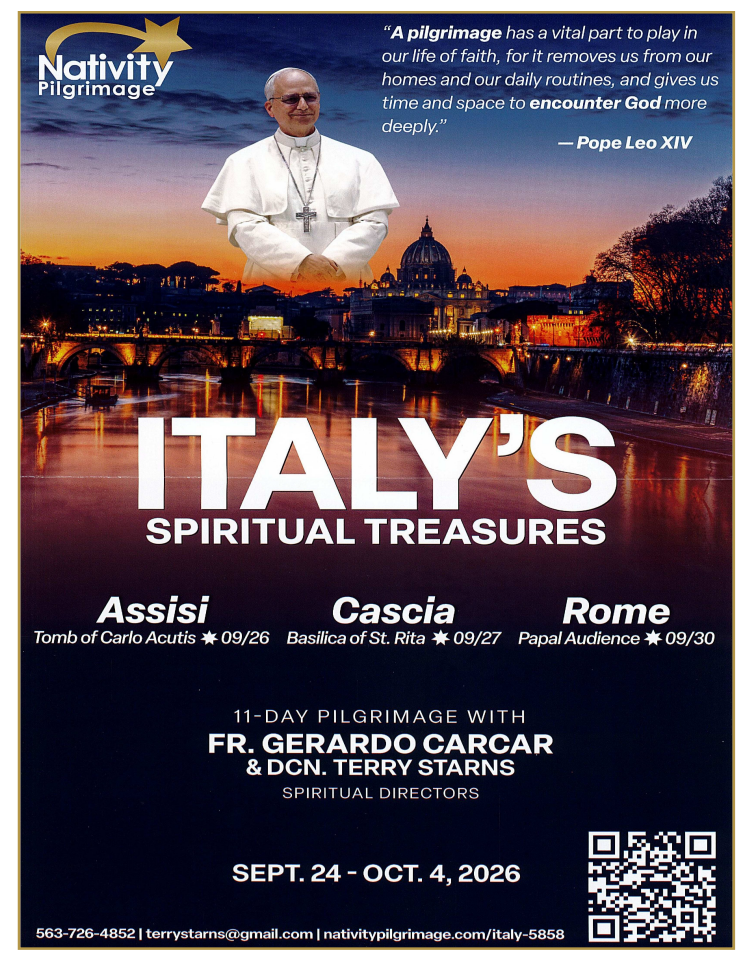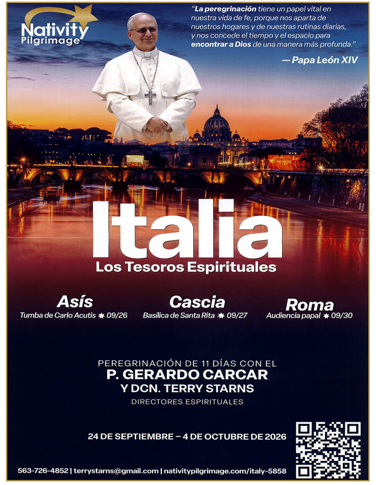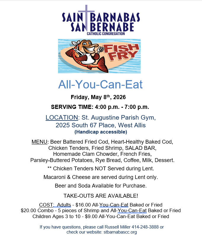 Please find our Mass and Worship and event schedule below. Below the calendar you can view and download event flyers from the bulletin.