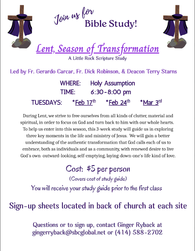 9am (S.A) Ash Wednesday Mass: Fr. Carcar (time TBD)